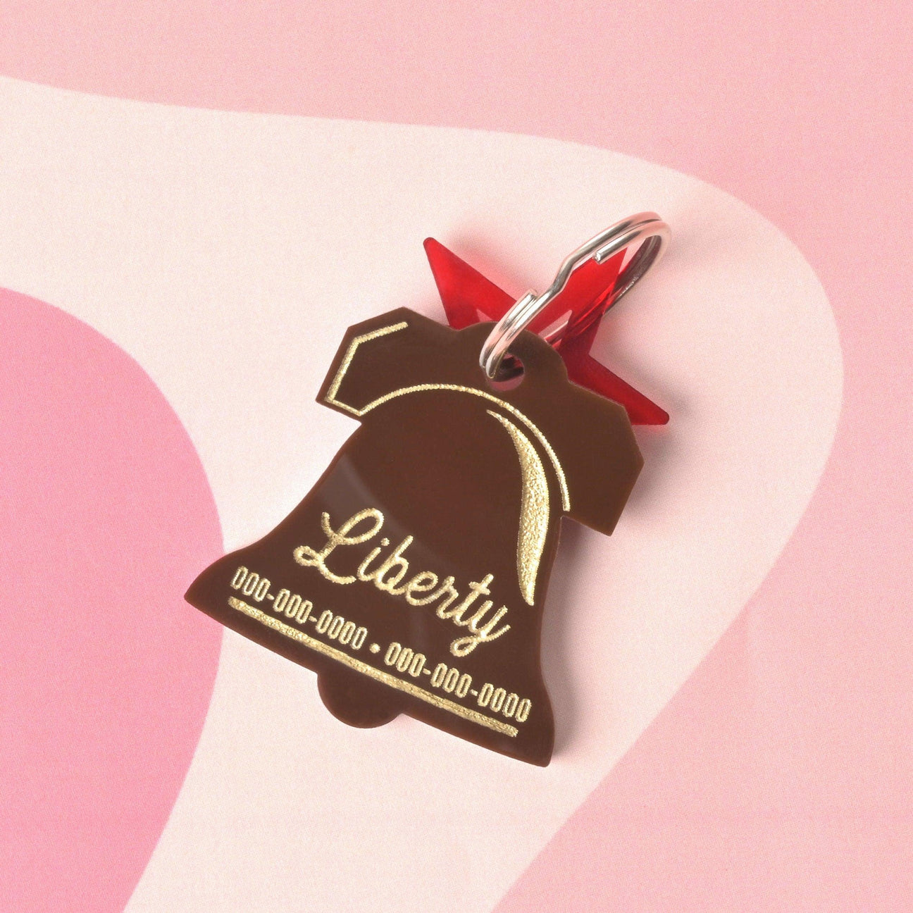 Liberty Bell inspired design perfect for the American History Lover or a July 4th event. Customizable front allows for name and two phone numbers. Text is engraved and colored for easy, long lasting, readability.