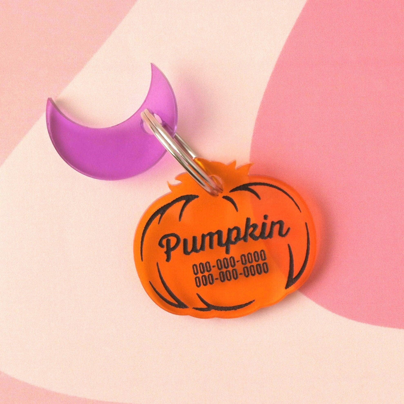Customized tag comes with one seasonal mini. Seasonal mini choices include: gem, diamond, tiny heart, sun, monstera leaf, star, jack-o-lantern, bat, or moon. Colors for seasonal minis are not guaranteed, but suggestions are welcome!